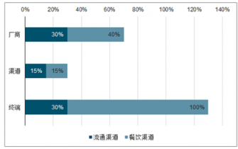 在餐飲渠道,廠商、渠道和終端的議價權基本由終端主導,終端可獲得產業鏈一半以上的利潤。在流通渠道,終端加價率在30%左右。一般經銷商層面毛利率水平在10-15%,商業模式主要依靠周轉效率。