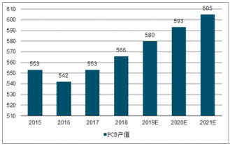 2015-2021年全球PCB產值及預測