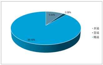 汽車零部件產(chǎn)品跨區(qū)域、跨國家之間的調(diào)配使得汽車零部件物流市場存在單一乃至多種運輸方式相結合的物流方式。其中陸運是汽車零部件市場最主要的物流方式,2019年我國汽車零部件物流陸運市場規(guī)模為4362.9億元,占同期汽車零部件物流陸運市場規(guī)模總量的88.48%,為零部件物流主要形式;水運市場規(guī)模為465.3億元,規(guī)模占比為9.44%;空運雖然具備快捷等有利因素,但是高額的成本支出限制類汽車零部件物流空運市場的發(fā)展,2019年空運市場規(guī)模約為1102.5億元,規(guī)模占比為2.08%。