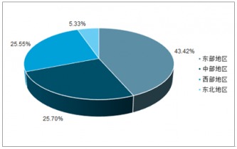 分地區看,東部地區林業產業總產值為33114億元,中部地區林業產業總產值為19606億元,西部地區林業產業總產值19488億元,東北地區林業產業總產值為4064億元。受我國整體經濟形勢影響,各地區增速均有所放緩,但中、西部地區林業產業增長勢頭依然強勁,增速分別達到8.84%和12.04%。東部地區林業產業總產值所占比重最大,占全部林業產業總產值的43.42%。受國有林區天然林商業采伐全面停止和森工企業轉型影響,東北地區林業產業總產值連續四年出現負增長。
