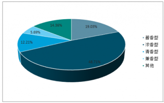 從分香型的消費(fèi)量結(jié)構(gòu)來看,我國的白酒消費(fèi)以濃香型為主,其次是醬香型與清香型,其中醬香型主要是高端白酒,消費(fèi)量占比相對較小,但市場規(guī)模占比相對較大。
