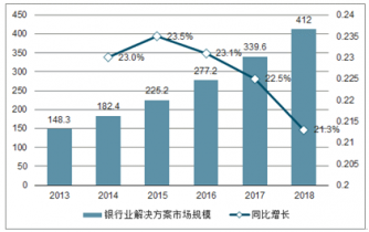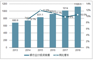 2013-2018年中國(guó)銀行業(yè)IT投資規(guī)模及增長(zhǎng)
