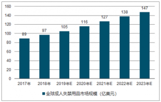 2017-2023年全球成人失禁用品市場規(guī)模走勢圖(億美元)