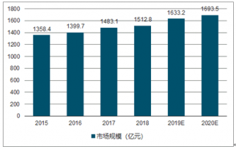 圖表:2015-2019年中國(guó)廢塑料市場(chǎng)規(guī)模