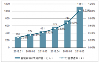 截至2018年上半年,我國智能音箱附帶的相關(guān)應(yīng)用控制軟件的用戶量達(dá)到1121萬人,規(guī)模不斷攀升,智能音箱行業(yè)滲透率不斷擴(kuò)大。