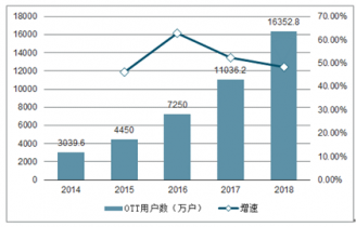 2014-2018年OTTTV全國用戶數(shù)及增速