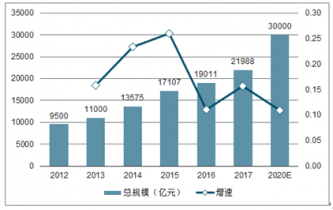 2012-2020年我國體育產(chǎn)業(yè)總規(guī)模及增速預測