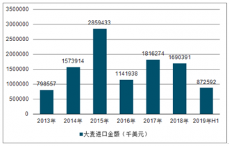 2013-2019H1中國大麥進(jìn)口金額趨勢圖
