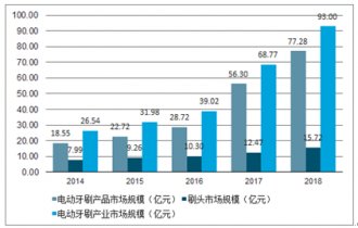 電動(dòng)牙刷在國(guó)內(nèi)市場(chǎng)的起步是從2012年開(kāi)始的,之前一直屬于空白市場(chǎng),國(guó)內(nèi)只有在非常高端的商場(chǎng)才能買到。自2012年起步,到2015年市場(chǎng)規(guī)模達(dá)到31.98億元,2019年達(dá)到93.00億元,其量級(jí)增長(zhǎng)十分驚人。