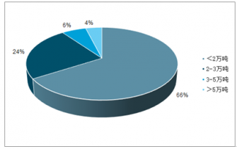 不過(guò),受傳統(tǒng)觀念制約和原料來(lái)源的限制,我國(guó)商品有機(jī)肥企業(yè)以中小型規(guī)模為主,產(chǎn)業(yè)集中度低。根據(jù)近年來(lái)的統(tǒng)計(jì)數(shù)據(jù)顯示,有66%的企業(yè)年產(chǎn)量小于2萬(wàn)噸,年產(chǎn)量5萬(wàn)噸以上的企業(yè)僅有4%。