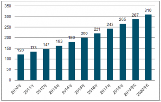 2010-2020年全球洗衣液市場規(guī)模及預(yù)測(億美元)
