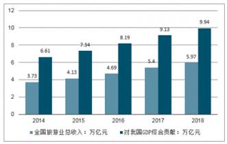 2014-2019年全國旅游業(yè)總收入及對我國GDP綜合貢獻(xiàn)統(tǒng)計情況