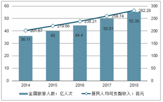 2014-2019年全國旅游人數及居民人均可支配收入統(tǒng)計情況