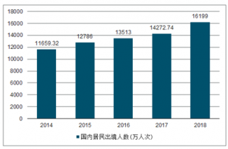 2014-2019年國內居民出境人數(萬人次)