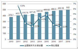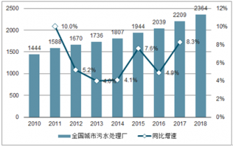 2010-2019年中國城市污水處理廠數(shù)量及增速
