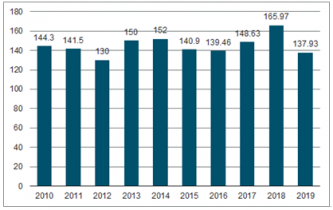 2010-2019年國家公務員考試培訓報名人數