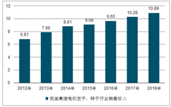 按照定子、轉(zhuǎn)子在電機(jī)零部件30%的產(chǎn)值比重計(jì)算,可大致推測出高速電機(jī)定子、轉(zhuǎn)子行業(yè)的銷售收入變化。2012年我國高速電機(jī)定子、轉(zhuǎn)子行業(yè)銷售收入已達(dá)6.81億元。到了2017年我國高速電機(jī)定子、轉(zhuǎn)子行業(yè)銷售收入增長突破10億元,達(dá)到了10.28億元。截止至到2019年我國高速電機(jī)定子、轉(zhuǎn)子行業(yè)銷售收入已接近11億元,達(dá)到10.89億元。