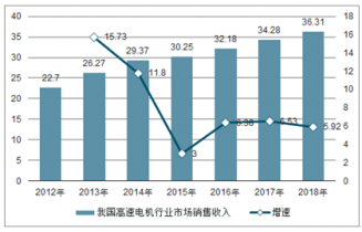 2012-2019年我國高速電機(jī)行業(yè)市場銷售收入統(tǒng)計(jì)及增長情況