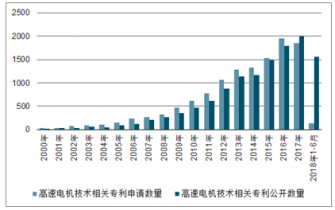 2000-2019年上半年高速電機技術(shù)專利申請及公開數(shù)量