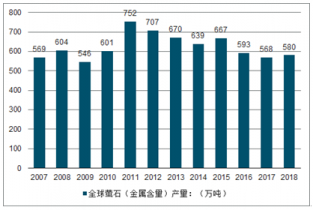 2012-2019年全球螢石產(chǎn)量走勢(shì)圖