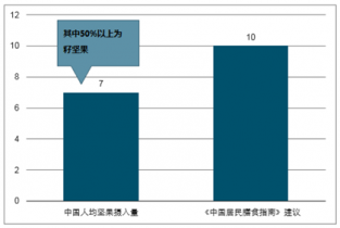 我國人均堅果攝入量低于膳食指南要求(g/天)