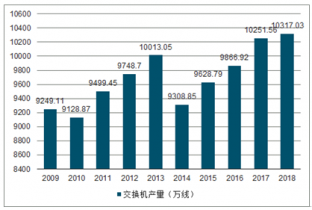 2009-2019年中國(guó)交換機(jī)行業(yè)產(chǎn)量走勢(shì)