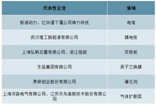 我國燃料電池汽車產(chǎn)業(yè)部分領(lǐng)域代表性企業(yè)