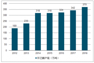 2012-2019年中國(guó)環(huán)己酮產(chǎn)能走勢(shì)