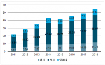 2011-2018年中國卷材涂料產(chǎn)量規(guī)模