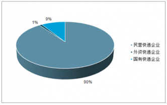 從業(yè)務(wù)量來看,民營快遞企業(yè)占據(jù)著我國90%的市場份額,擁有著絕對優(yōu)勢;國有快遞企業(yè)包袱沉重,份額下降,但具政策和網(wǎng)絡(luò)優(yōu)勢,仍占有9%的份額;外資快遞企業(yè)在國內(nèi)市場發(fā)展緩慢,僅占1%。
