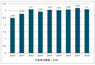 2010-2018年國(guó)內(nèi)焦煤消費(fèi)量情況