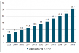 2008-2019年全球功能性硅烷產(chǎn)量及增長趨勢