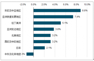 2017-2020年(預(yù)測),全球不同地區(qū)廣告費用支出的年均增長速度情況