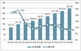 2010-2019年特種氣體行業(yè)市場規(guī)模一直呈現(xiàn)穩(wěn)定上升趨勢(shì),2019年已經(jīng)達(dá)到296.49億元,較2017年增長8%。