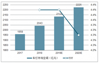 隨著技術(shù)升級,產(chǎn)品換代,新車銷量增長,車燈市場空間持續(xù)擴張。經(jīng)過測算2017年中國車燈市場空間約為529億元,全球車燈市場空間約為1958億元,到2020年中國車燈市場空間將增長至648億元,全球車燈市場空間將增長至2225億元。