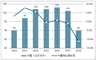 2012-2019年瓷磚行業(yè)年產(chǎn)量及同比增速