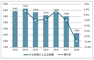 2012-2019年瓷磚行業(yè)規(guī)模以上企業(yè)數(shù)量及增長率