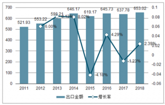 2011-2018年中國汽車零部件制造行業(yè)出口額及增長