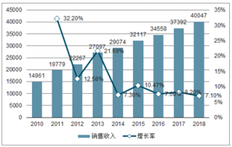 2010-2018年中國汽車零部件制造行業(yè)銷售收入及增長