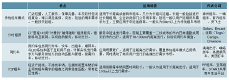 根據(jù)服務(wù)類型和車輛歸屬,共享汽車主要分為傳統(tǒng)汽車租賃模式,分時(shí)租賃模式,網(wǎng)約車模式和P2P租車。其中分時(shí)租賃和網(wǎng)約車都是以移動(dòng)互聯(lián)網(wǎng)為基礎(chǔ),分別實(shí)現(xiàn)“隨停隨取”的租賃服務(wù)和按需約車服務(wù)。