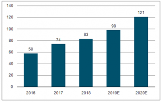 2019年國內激光器市場規模超過80億元,預計到2020年中國激光器市場規模將達121億元。