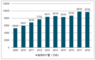 2009-2019年我國豬飼料產(chǎn)量