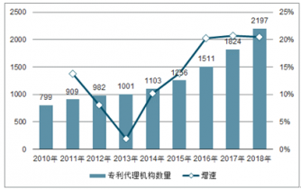 2010-2018年全國(guó)專利代理機(jī)構(gòu)數(shù)量變化