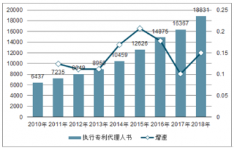 2010-2018年全行業(yè)擁有執(zhí)業(yè)專利代理人情況