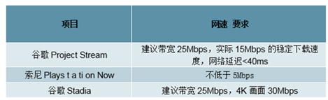 主要云游戲網(wǎng)速需求