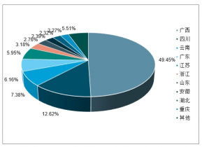 2017年全國主要省市桑蠶繭產量占比情況