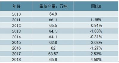 2010-2018年中國蠶繭產量及增長走勢