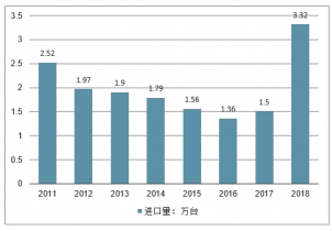 2011-2018年中國(guó)包裝機(jī)械行業(yè)進(jìn)口量走勢(shì)