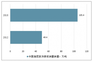 2012-2018年我國面層裝飾原紙銷量情況