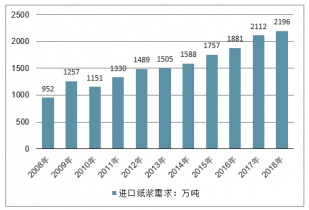 2008-2018年我國紙漿產(chǎn)品需求情況